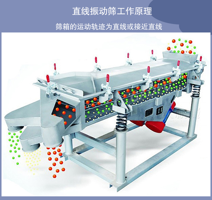 直線振動篩篩箱的運(yùn)動軌跡為直線或接近直線,它有兩個軸,所以又稱雙軸振動篩。直線振動篩水平或傾斜安裝,這類振動篩結(jié)構(gòu)緊湊,運(yùn)行平穩(wěn),被廣泛用于各類物料的脫水、脫泥、脫介,也用于中、細(xì)粒度物料的干式和濕式分級作業(yè)。我廠生產(chǎn)的直線振動篩種HZSF型號就是直線振動篩代表性的產(chǎn)品。