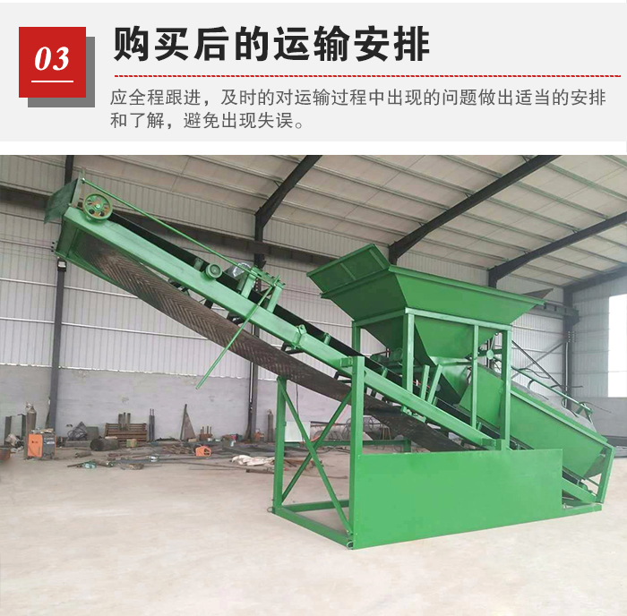 篩沙機在采購完畢后,廠家會在設備完成后進行運輸發(fā)貨,此時,用戶應全程跟進,及時的對運輸過程中出現(xiàn)的問題做出適當?shù)陌才藕土私?,避免廠家出現(xiàn)失誤,出現(xiàn)小配件漏發(fā)等問題。