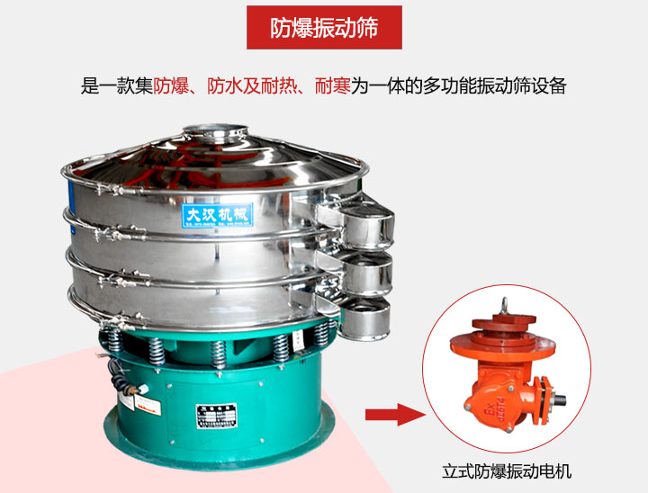 防爆振動篩是針對一些易產(chǎn)生爆炸行業(yè)的研發(fā)設(shè)計(jì)而成多功能振動篩設(shè)備